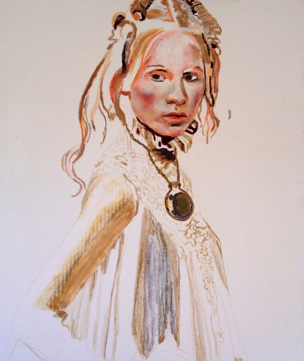 Girl with ornament. Pensil and pastel on paper, 65X50cm.